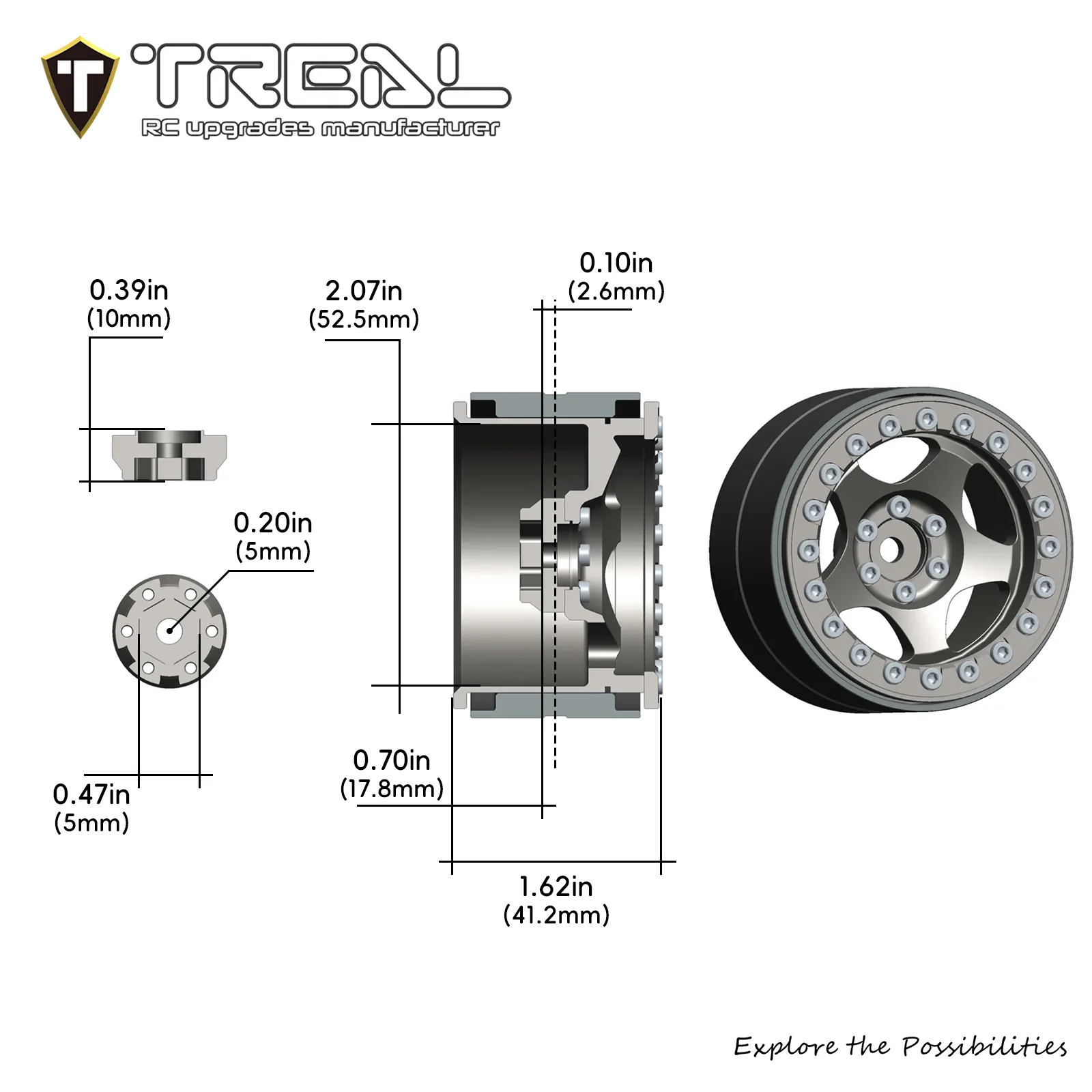 TREAL 2.2" Aluminum Beadlock Wheels (2pcs) for Axial Ryft Wraith RR10 RC Crawler- Type C
